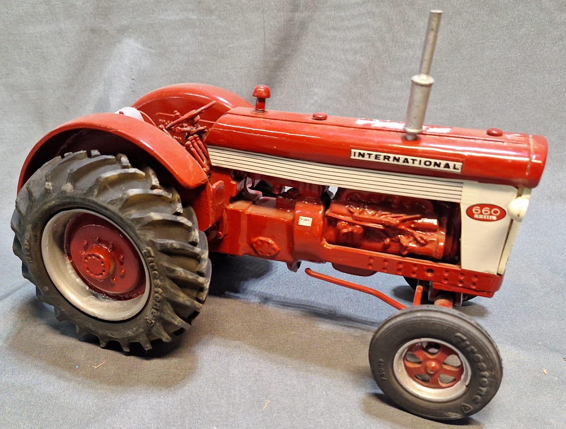 17 International Harvester 660 standard tractor, needs repair, has sticker residue on hood - 1/16 scale