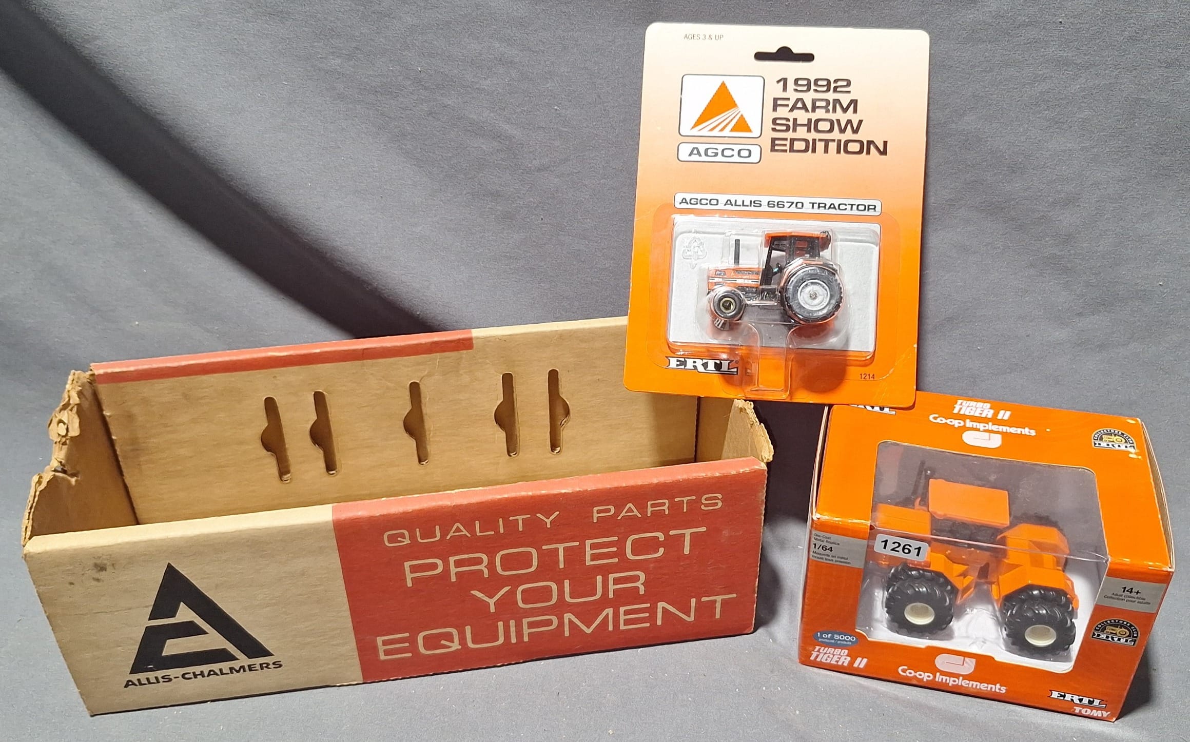 559 Co-Op Implements Turbo Tiger II & Agco Allis 6670 Tractors with Allis-Chalmers Parts box - 1/64 scale