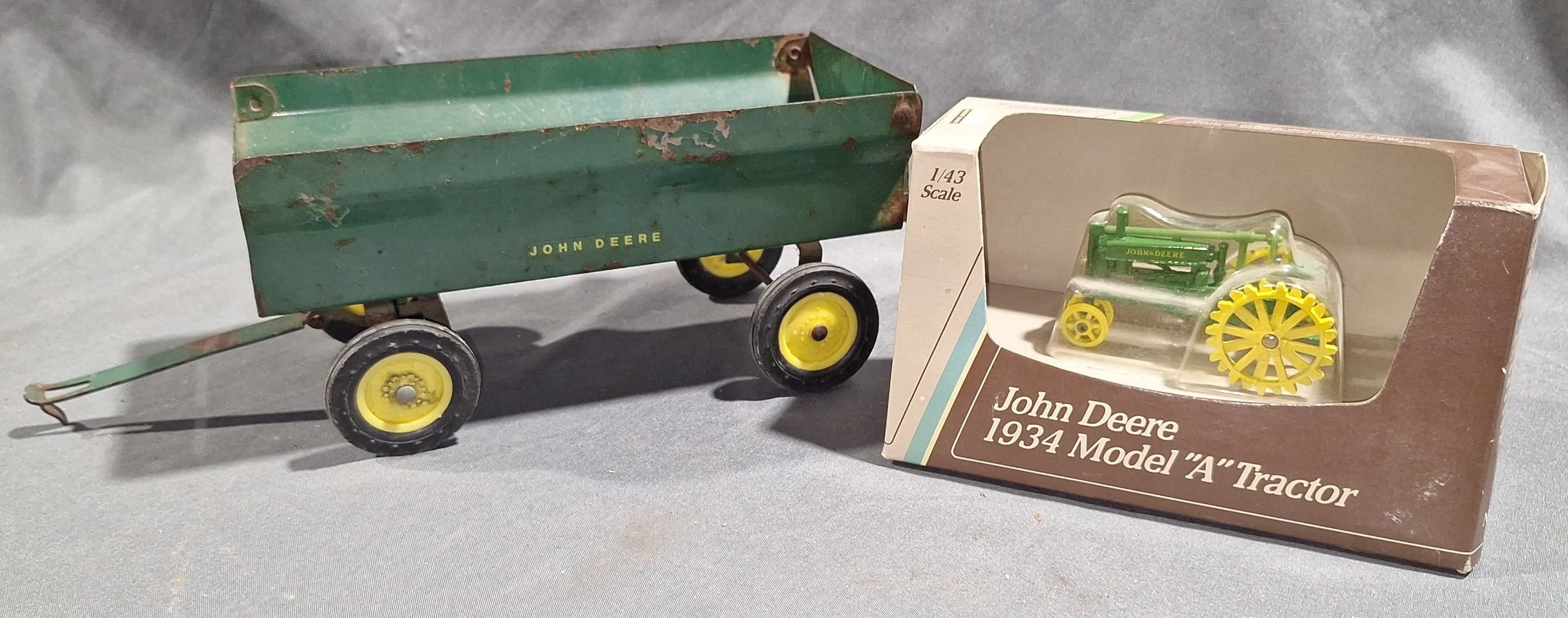 564 John Deere flare wagon 1/16 scale & John Deere A Tractor - 1/43 scale
