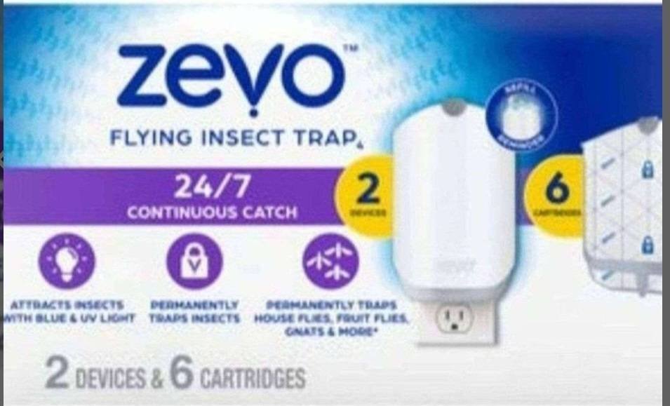 105 Zevo Flying Insect Trap Starter Kit With 2 Devices & 6 Cartridges
