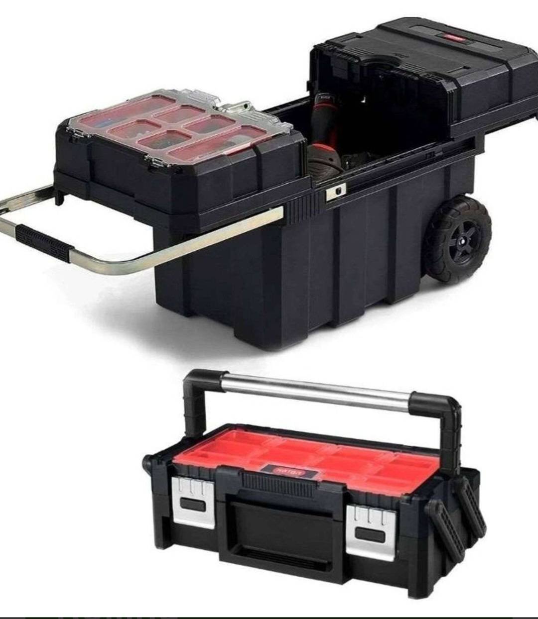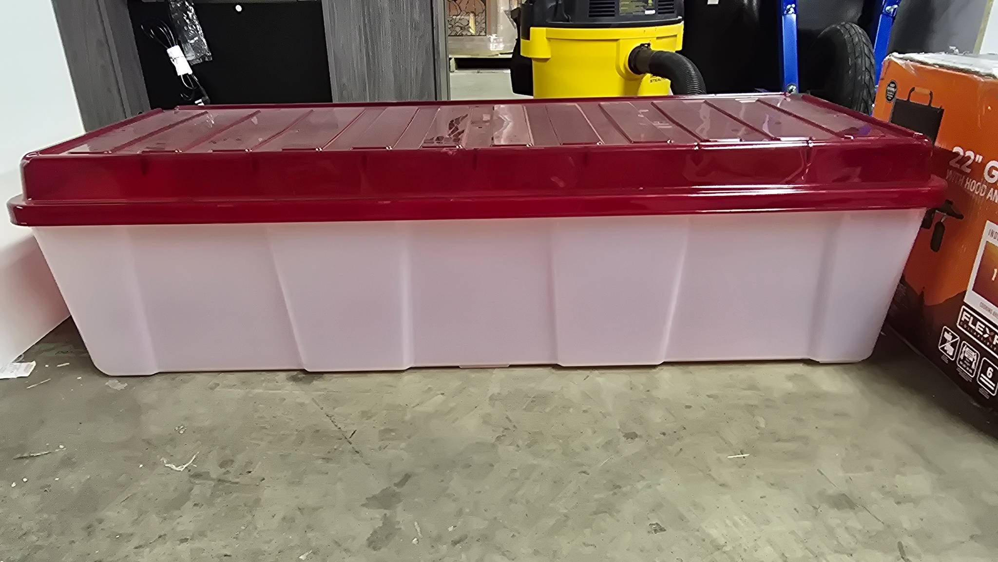 7616 Plastic Storage Tote with Red Lid and Wheels, 20x50x12 in