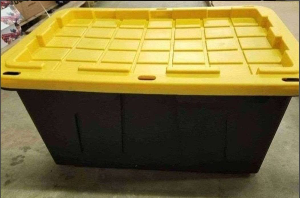 36 Plastic Storage Tote With Yellow Snap-On Lid, 30? x 20?