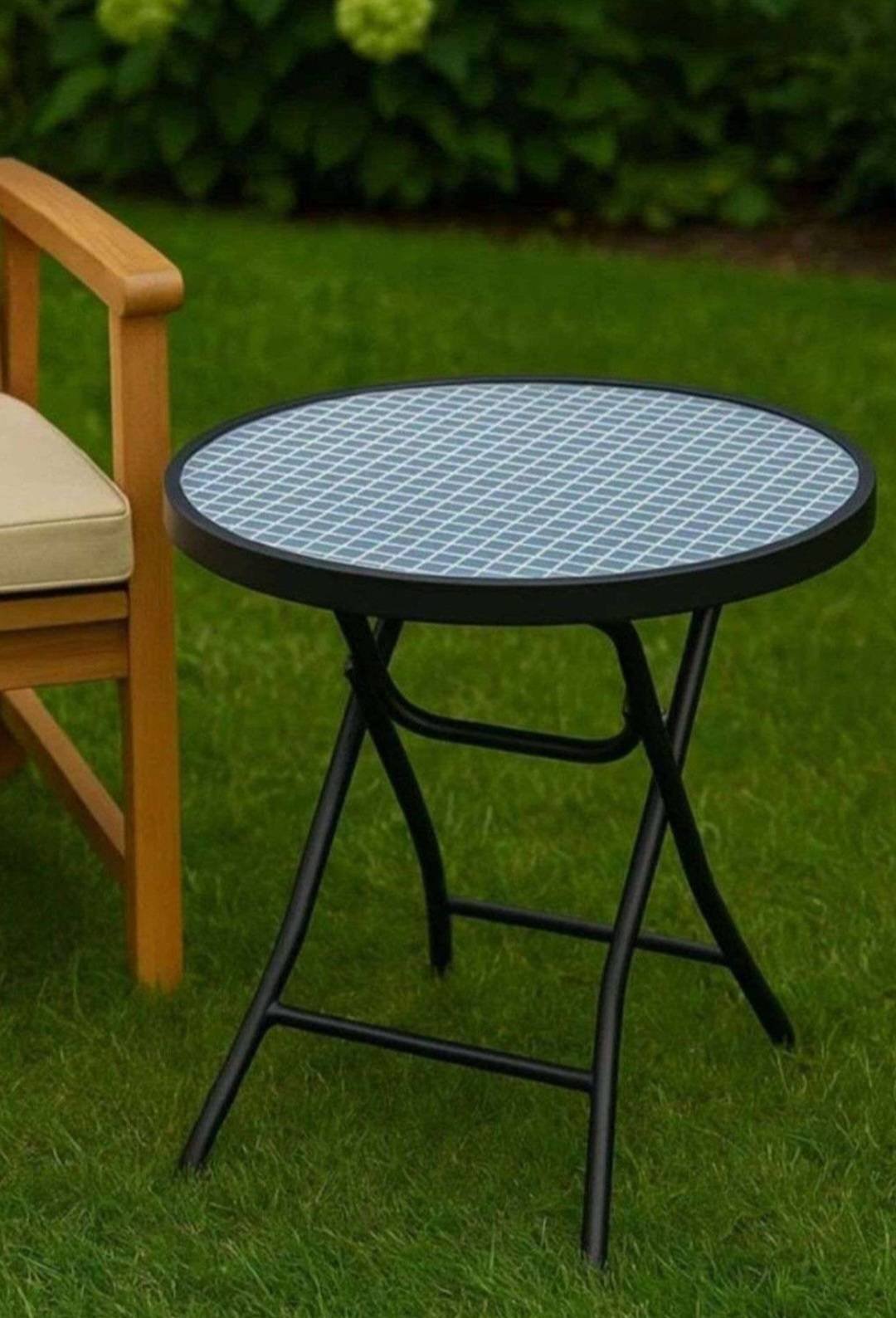 93 Home Essentials Glass Top Folding Patio Table 18? H x 18? D