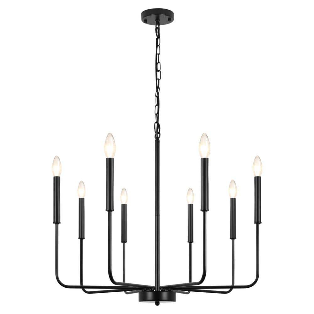 751012 ZJVAIVE - 8-Light Matte Black Farmhouse Candle Style Chandelier for Living Room Kitchen Island with No Bulbs Included