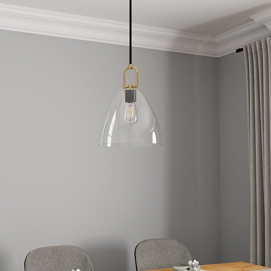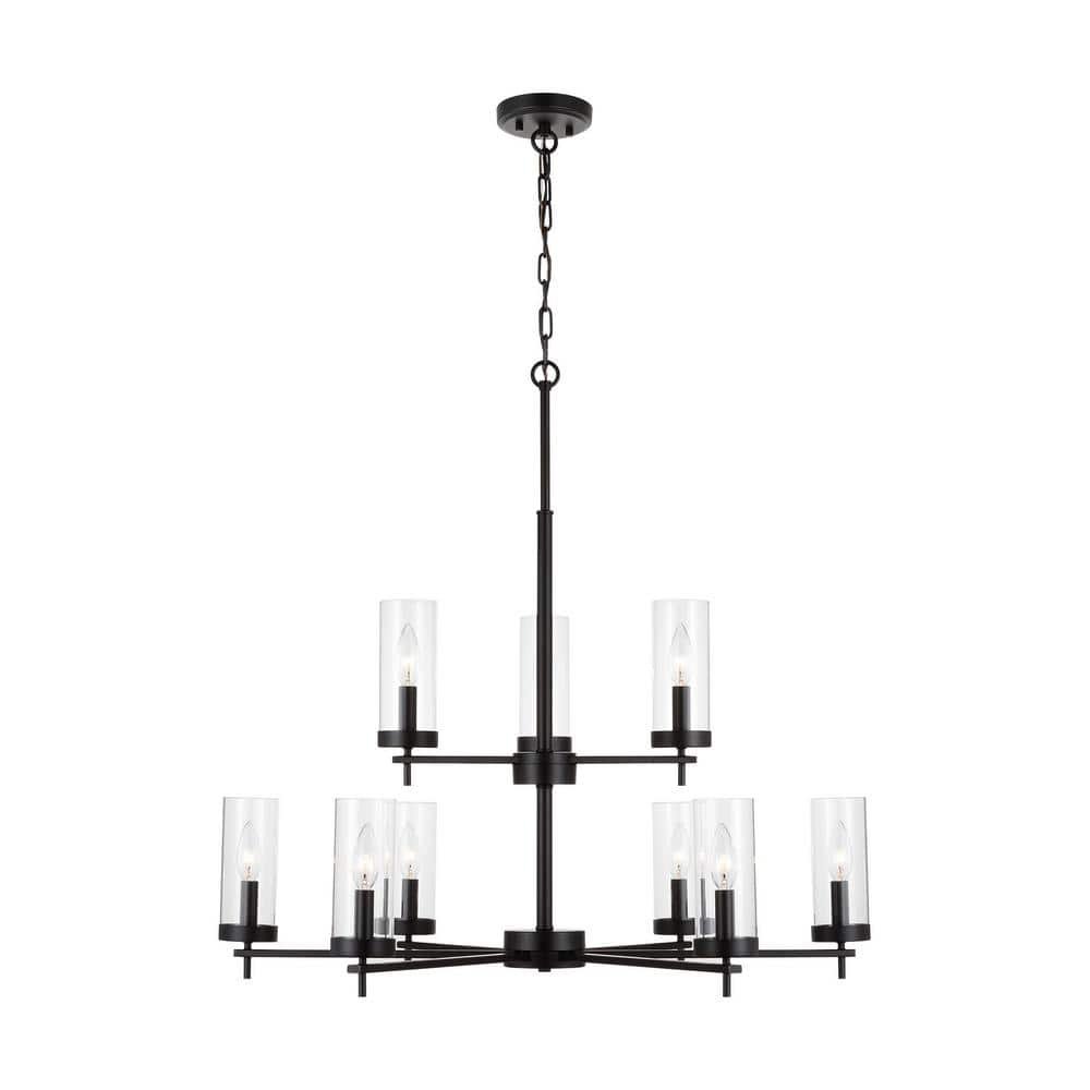 751027 GENERATION LIGHTING - Zire 9-Lights Midnight Black Modern Minimalist Dining Room Hanging Candlestick Chandelier with Clear Glass Shades