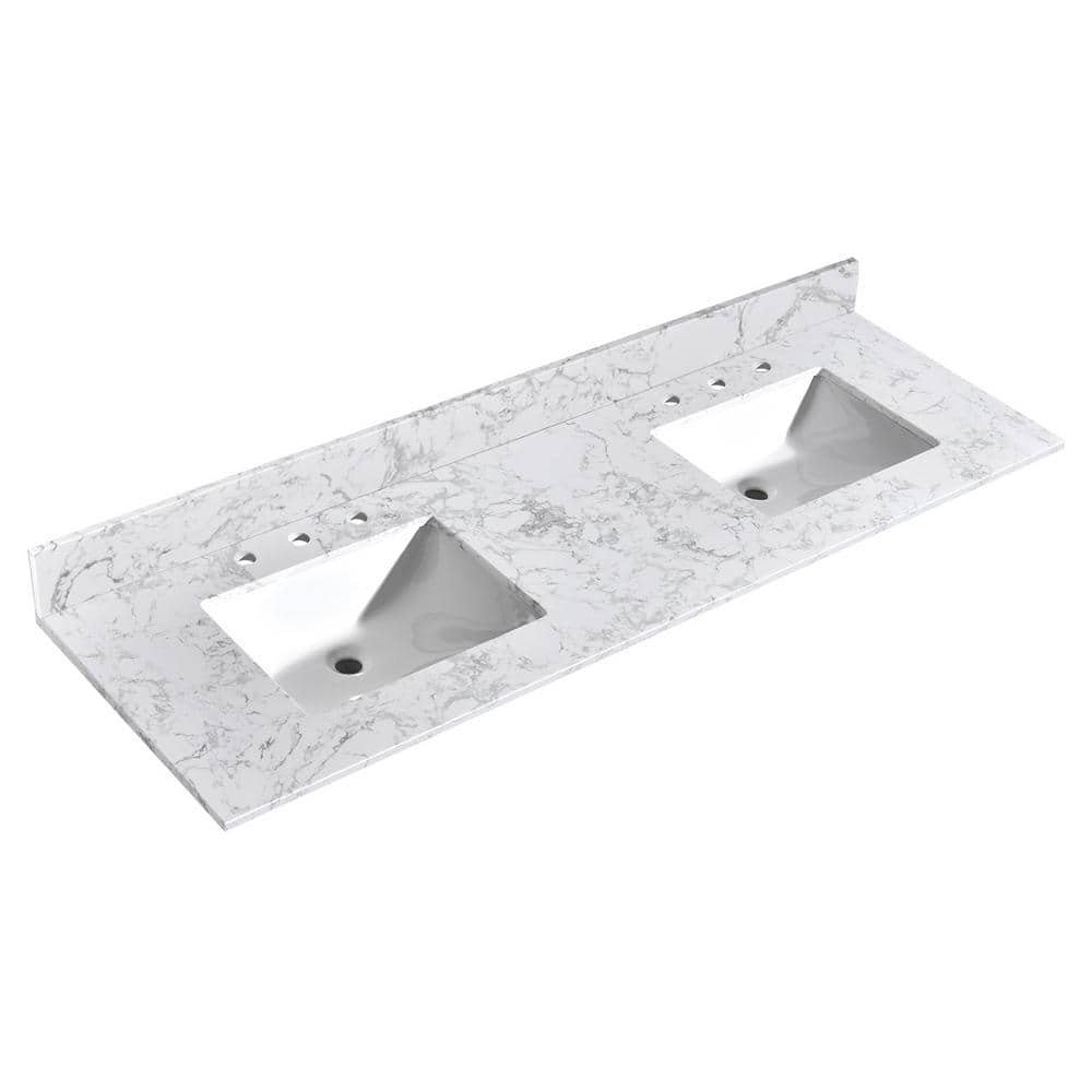 751035 YASINU - Moonface 72 in. W x 22 in. D Engineered Stone Composite White Rectangular Double Sinks Bath Vanity Top in Bianco Venato
