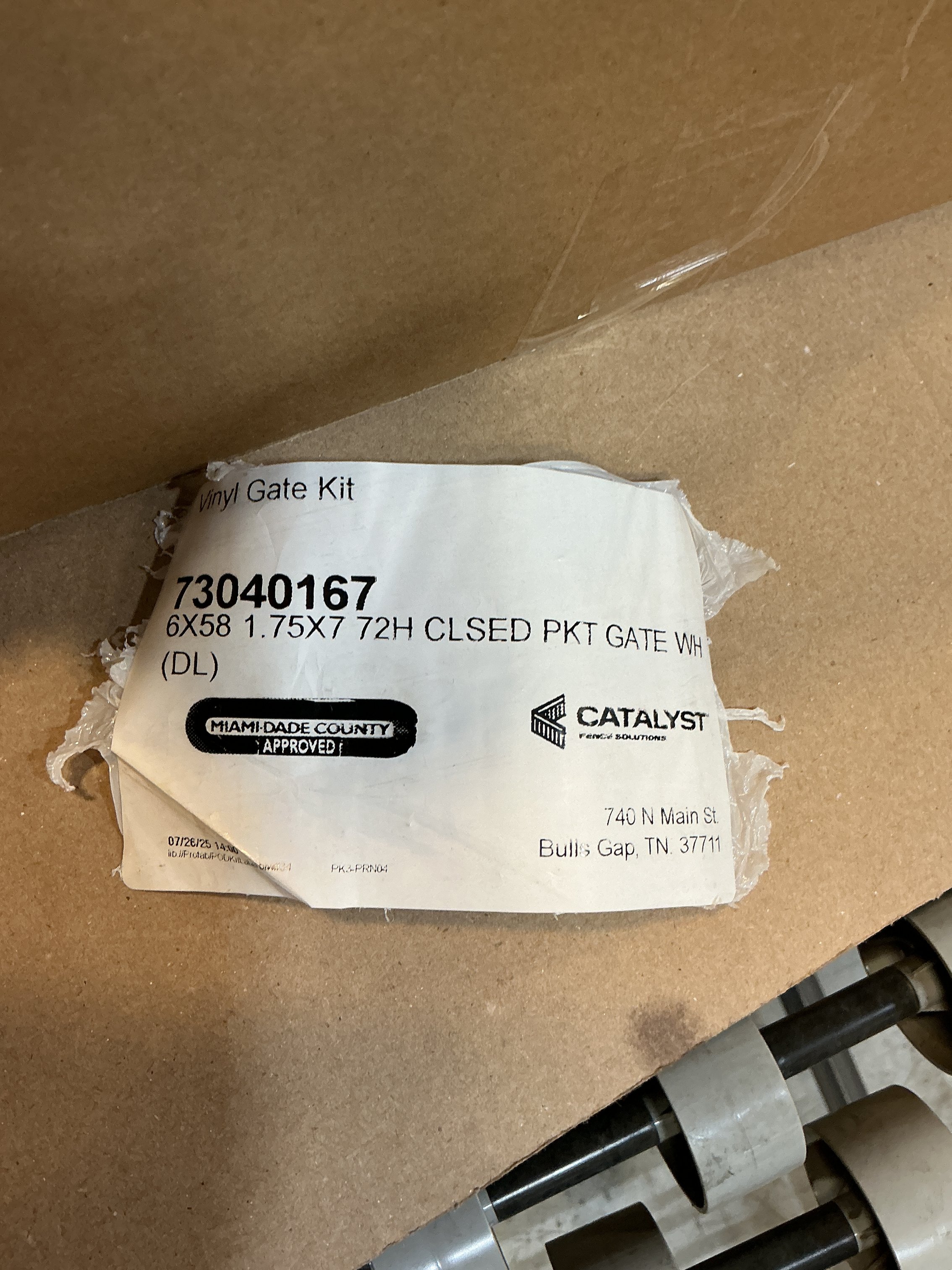751039 - VINYL GATE KIT 6X58 1.75X7 72F CLSED PKT GATE WH (DL)