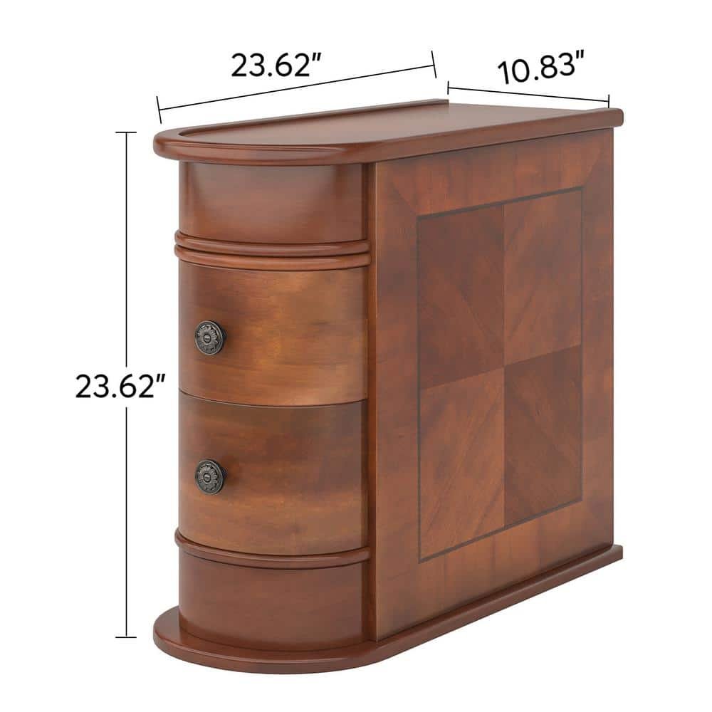751048 BYBLIGHT - Kerlin 23.6 in. Solid Wood 2-Drawer U-Shaped End Table Set, No Assembly Required, Finished Back, Walnut
