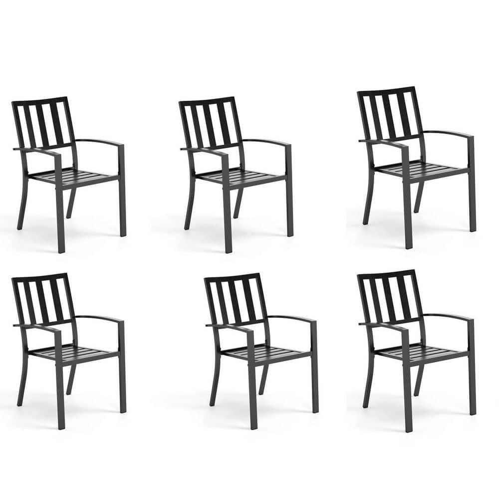 751051 - Stackable E-coating Modern Metal Patio Outdoor Dining Chair in Black Set of 4