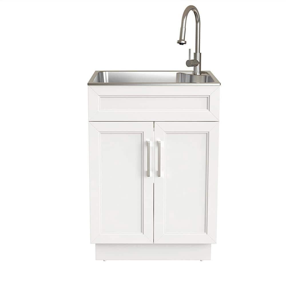751074 GLACIER BAY - 24 in. W x 21 in. D x 51 in. H Drop-In Stainless Steel Laundry Sink with Faucet and Cabinet in White