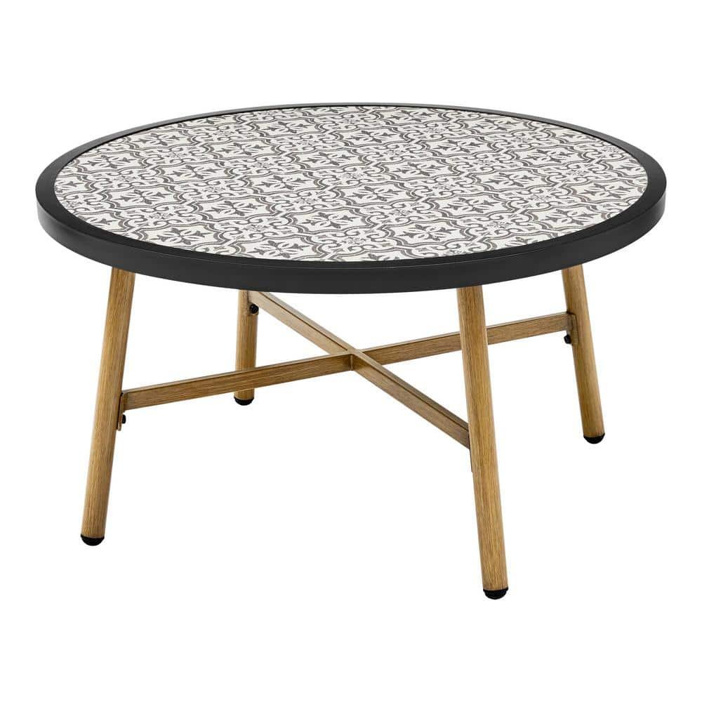 751090 HAMPTON BAY - Mix and Match Round Metal Outdoor Coffee Table with Ceramic Tile Top 26 IN