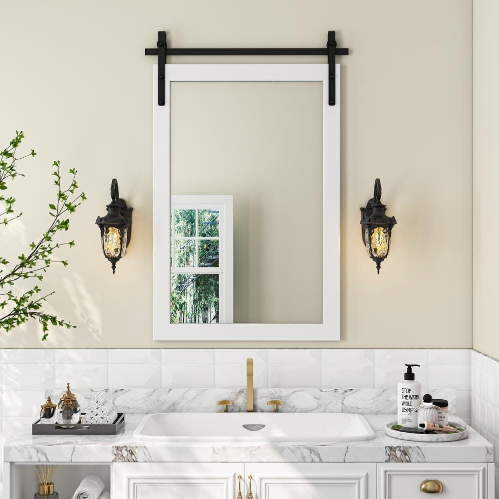 751046 MASONITE - 36 in. x 84 in. 6 Panel Melrose Primed Interior Sliding Barn Door Slab with Hardware Kit