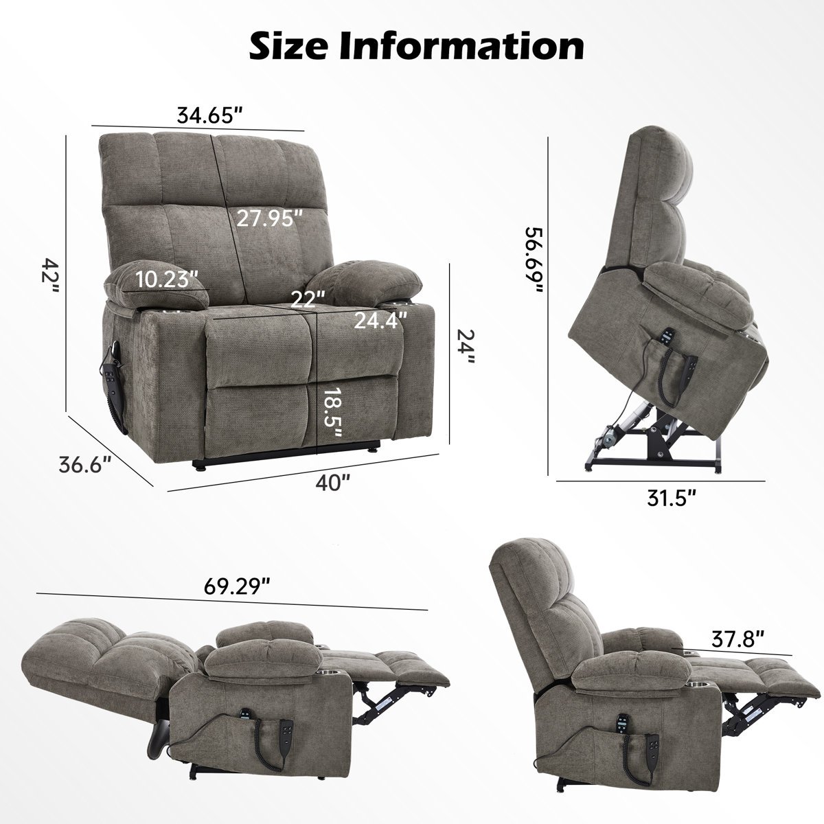 811013 LATITUDE RUN - Aura 40 W Dual Motor Power Lift Recliner Oversize Chair With Massage Heating, Dual Cup Holders, Dual Side Pockets Color-Blue