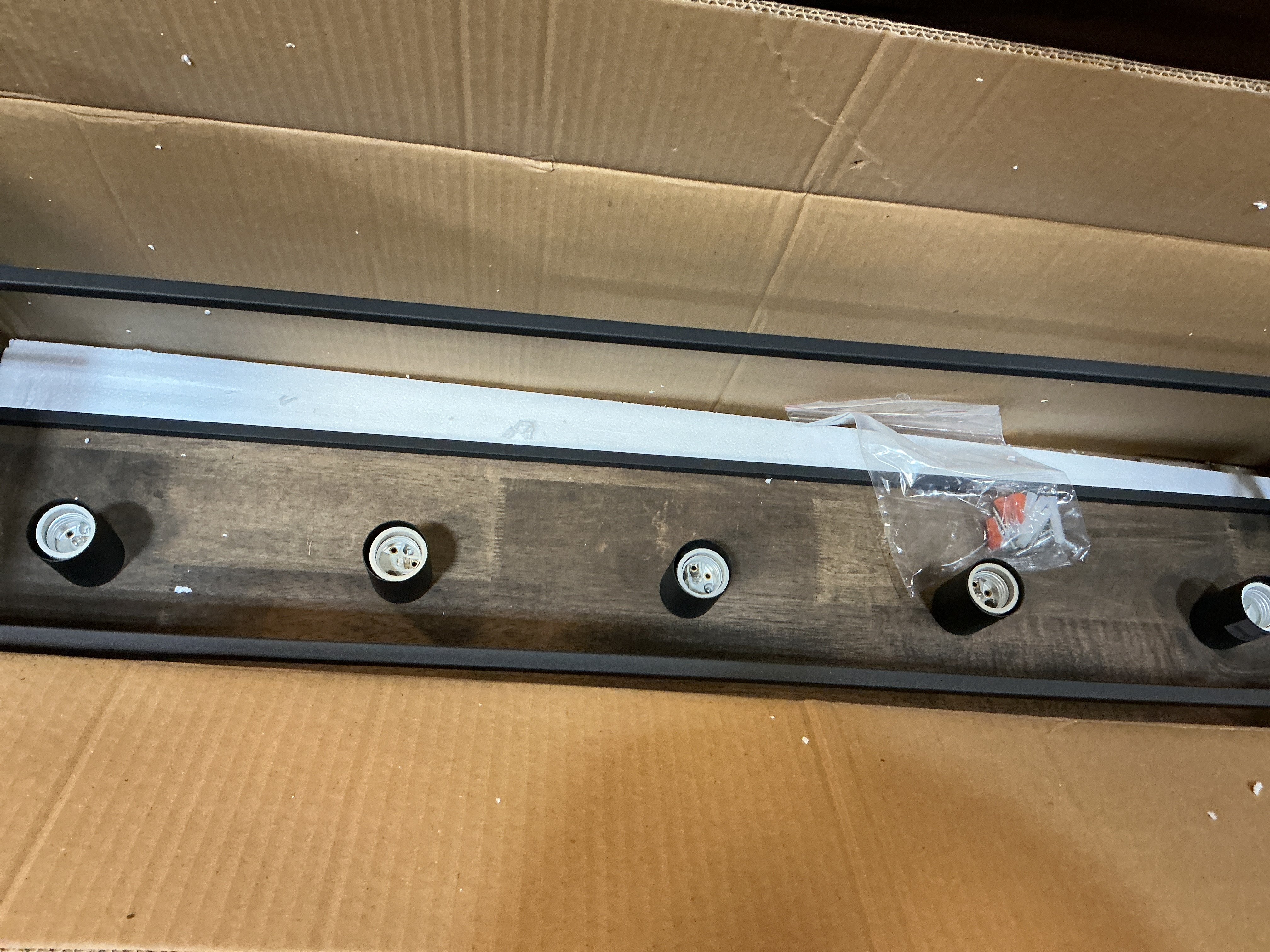 811020 Y - 14.57 in. 5-Light Modern Farmhouse WOODEN CAGE RECTANGULAR FLUSH MOUNT