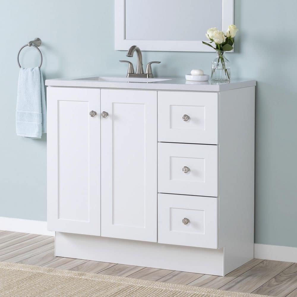 811046 "GLACIER BAY - Bannister 37 in. Single Sink White Bath Vanity (Assembled)