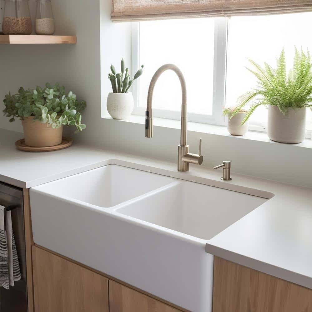 811053 SINKOLOGY - Turner 33 in. Farmhouse Apron Front Undermount Double Bowl Crisp White Fireclay Kitchen Sink