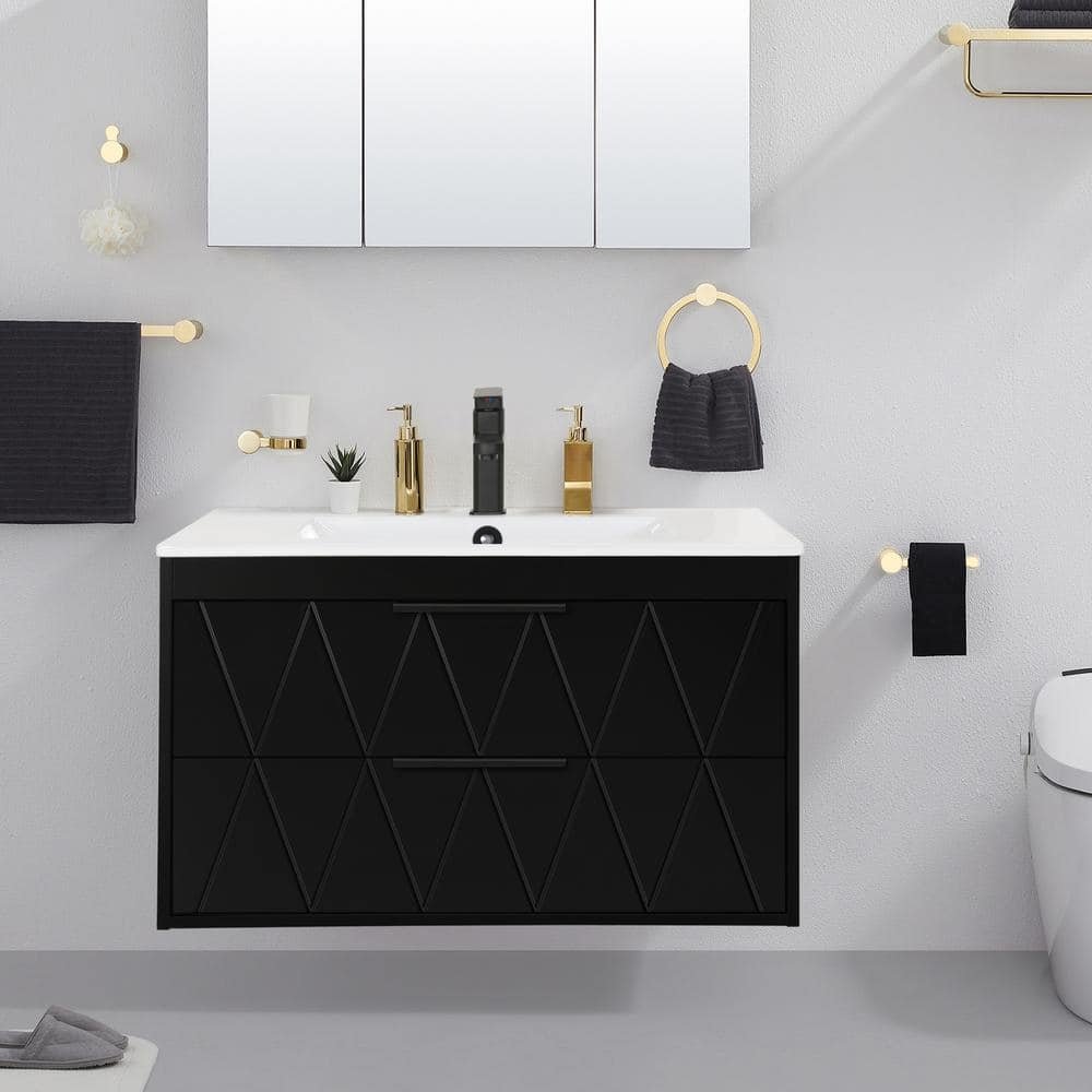 811056 ECLIFE - 30 in. W x 18.1 in. D x 18.1 in. H Single Sink Floating Black Bath Vanity