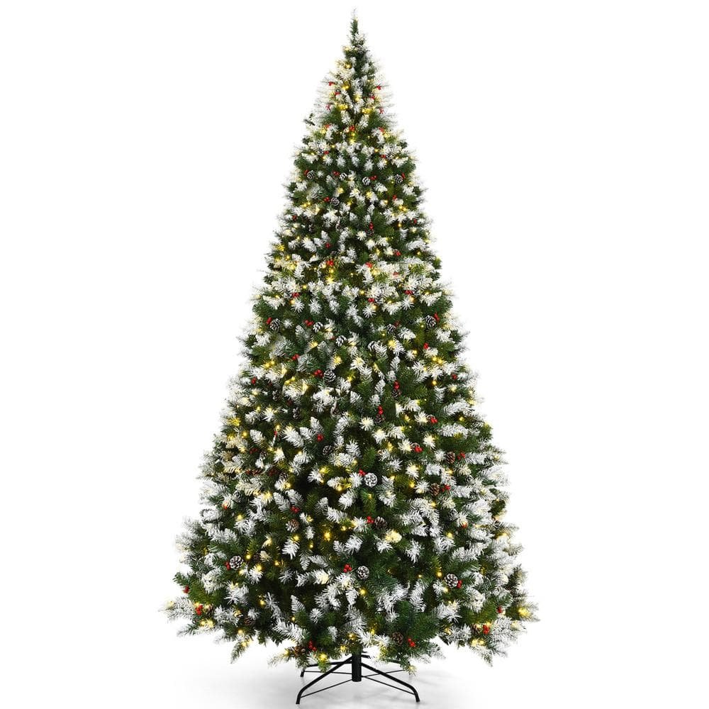 811070 - 9 FT Pre-lit Snow Sprayed Artificial Christmas Tree Xmas Tree w/LED Lights