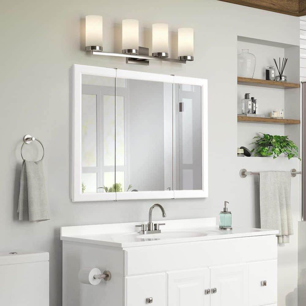 811075 DESIGN HOUSE - Wyndham 36 in. W x 30 in. H x 4-3/4 in. D Framed Tri-View Surface-Mount Bathroom Medicine Cabinet in White Semi-Gloss