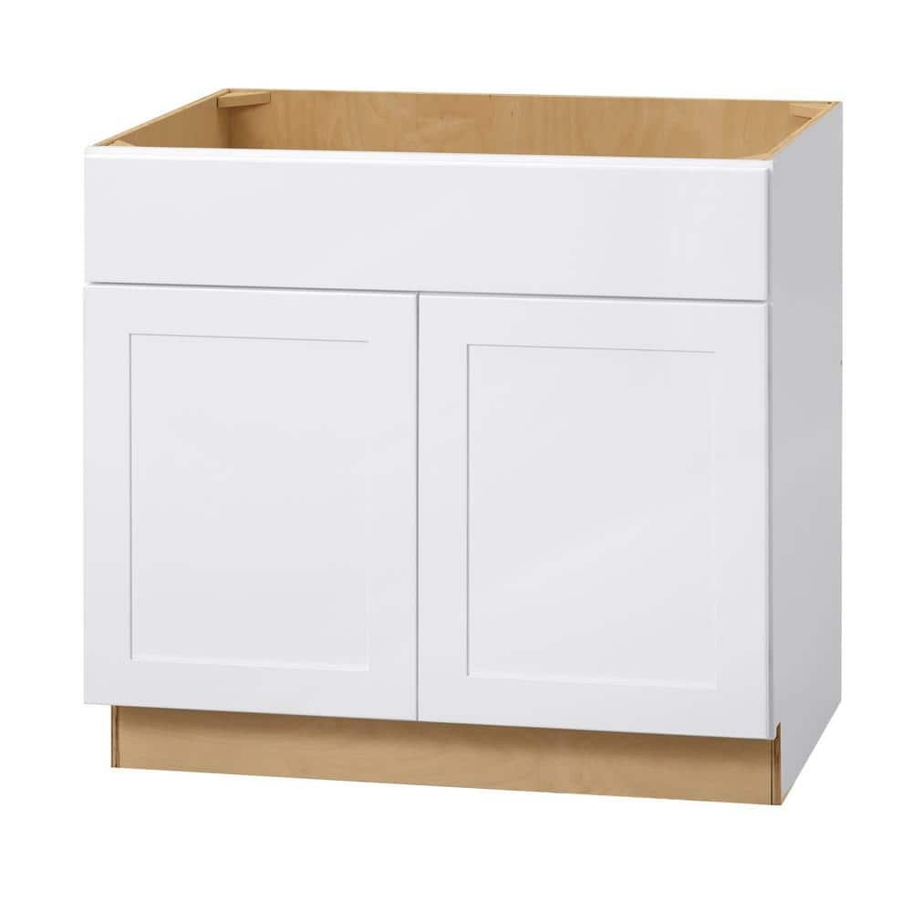 811082 HAMPTON BAY - Avondale 36 in. W x 24 in. D x 34.5 in. H Ready to Assemble Plywood Shaker Sink Base Kitchen Cabinet in Alpine White