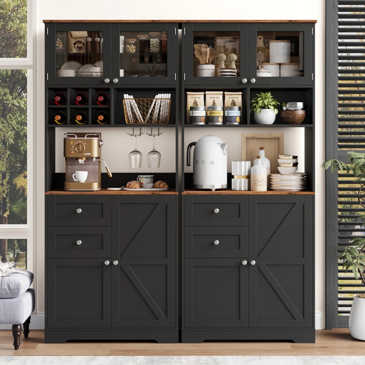 811086 RED BARREL STUDIO - 75.2 Kitchen Pantry Storage Cabinet With Microwave Shelf