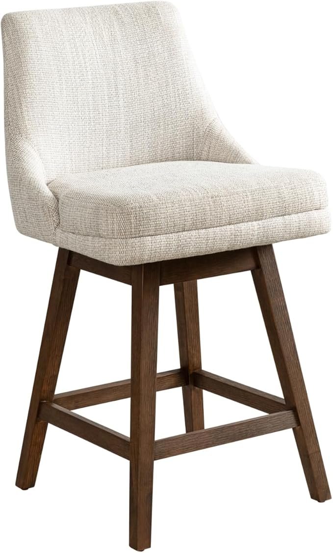 811043 CORRIGAN STUDIO - Absalom Swivel Upholstered 25.6 Linen Counter Stool with Metal Frame