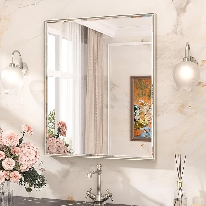 811069 - Silver 32 in. W x 36 in. H Bohemian Rectangle Glass Framed Mirror Wall Mirror Wall Decor Mirror
