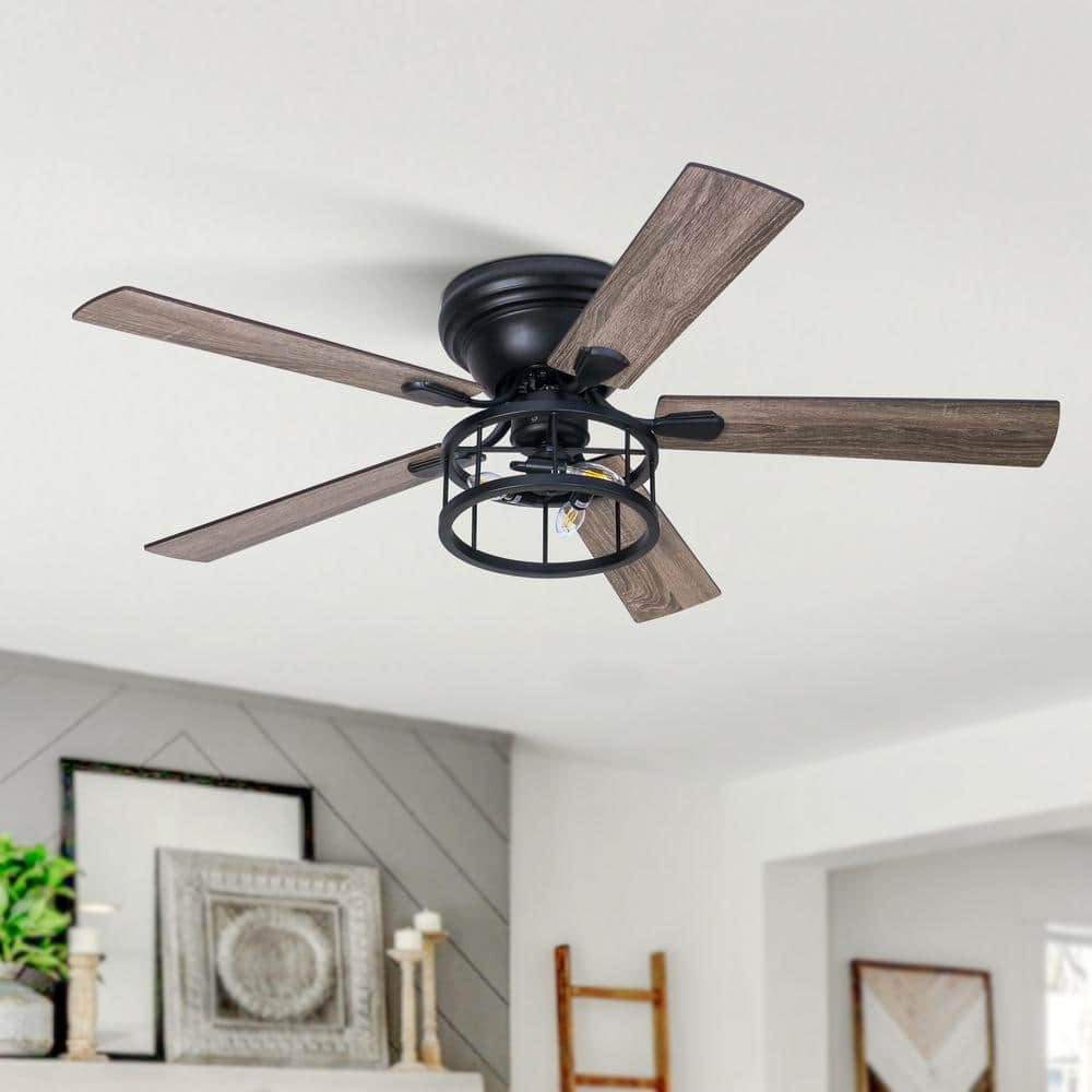 811081 "GENERATION LIGHTING - Jovie 52 in. Modern Indoor/Outdoor Black Ceiling Fan with Black/American Walnut Reversible Blades, LED Light Kit