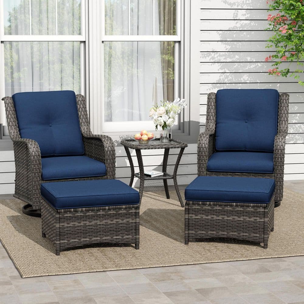 821019 GARDENBEE - Two Wicker Outdoor Patio Ottomans - SEE PRODUCT DETAILS