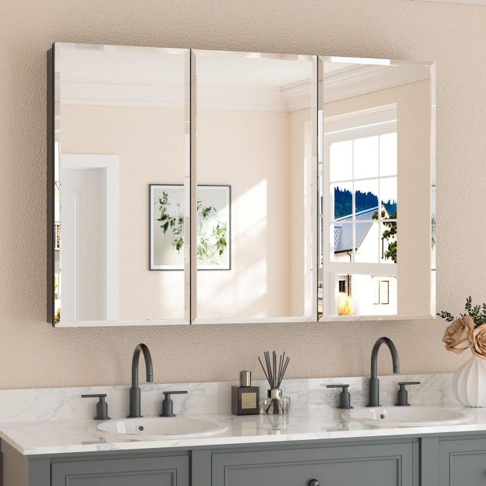 821084 WROUGHT STUDIO„¢ - Husai Recessed or Surface Mount Aluminum Frameless Medicine Cabinet With Mirrored Door and Adjustable Shelves