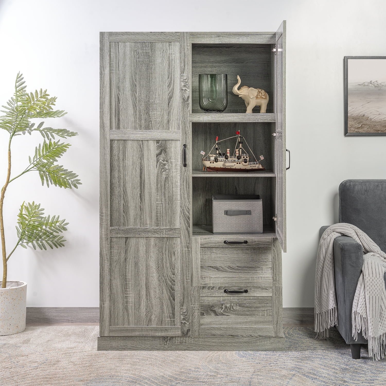 821049 NAOMI HOME - Naomi Home Rachel Traditional Kitchen Cabinet-Color Vintage Oak