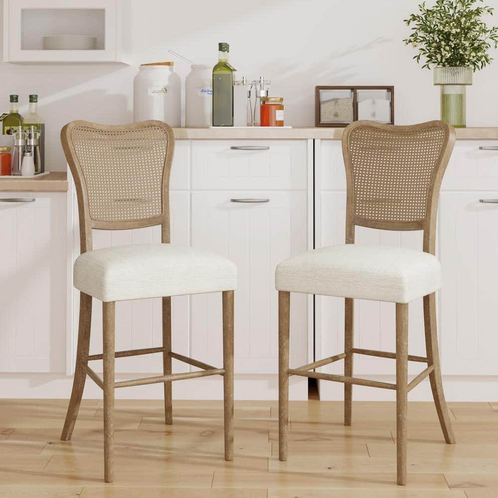 821052 NOBLE HOUSE - 30 in. Dark Brown and Beige Cane Back Rubberwood Barstool, Set of 2
