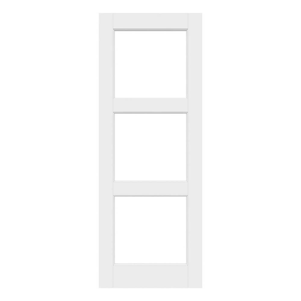 821060 ARK DESIGN - 32 in. x 80 in. 3 Lite Clear Glass White Solid Core MDF Wood Primed Standard Interior Door Slab - SEE PRODUCT DETAILS
