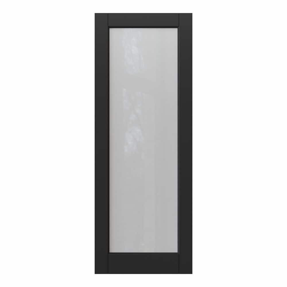 821075 " ARK DESIGN - 32 in. x 80 in. Solid Core MDF 1-Lite Tempered Frosted Glass and Manufacture Wood Black Finished Interior Door Slab