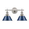 822948 - 23.25 in. Dark Blue Colored Dimpled Glass Endtable Bedside Table Desk Lamp with White Fabric Tapered Drum Shade