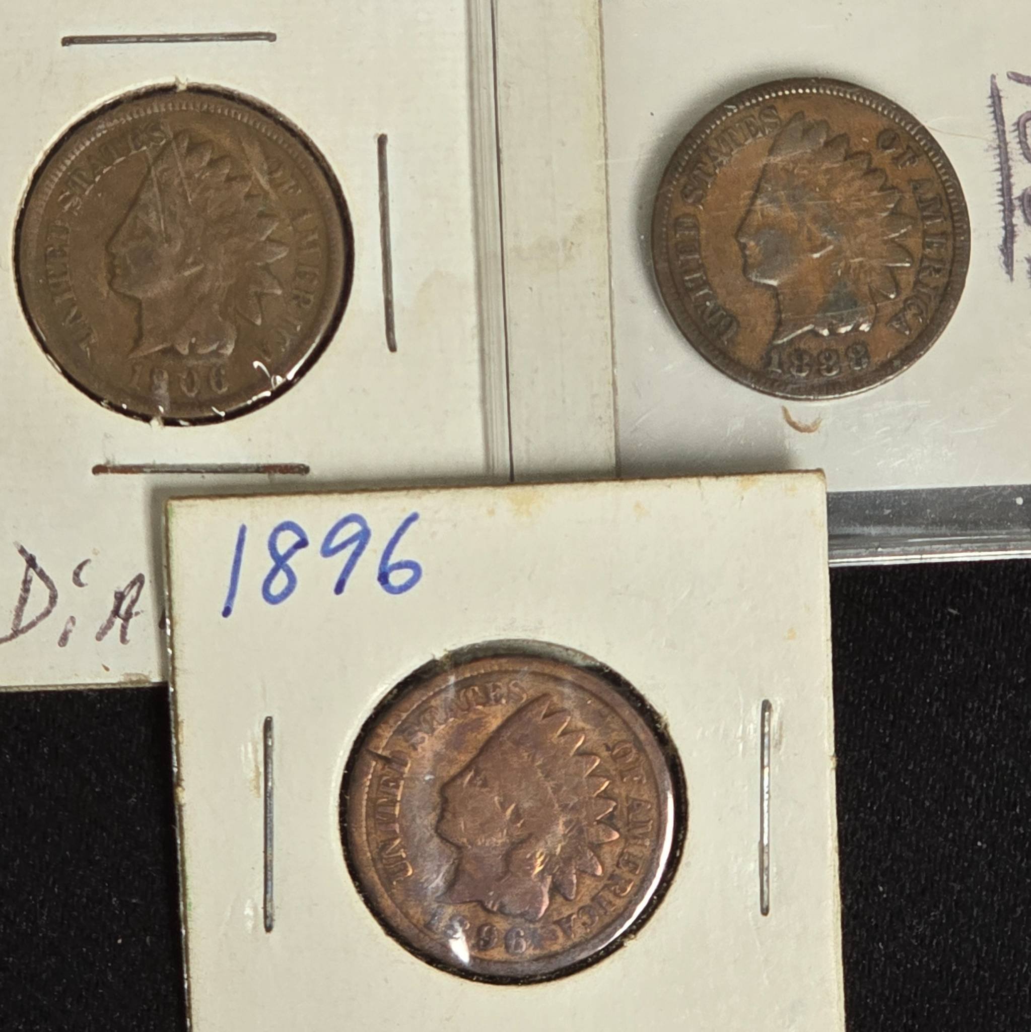 15 3 Indian Head Cents 1888, 1896, 1906
