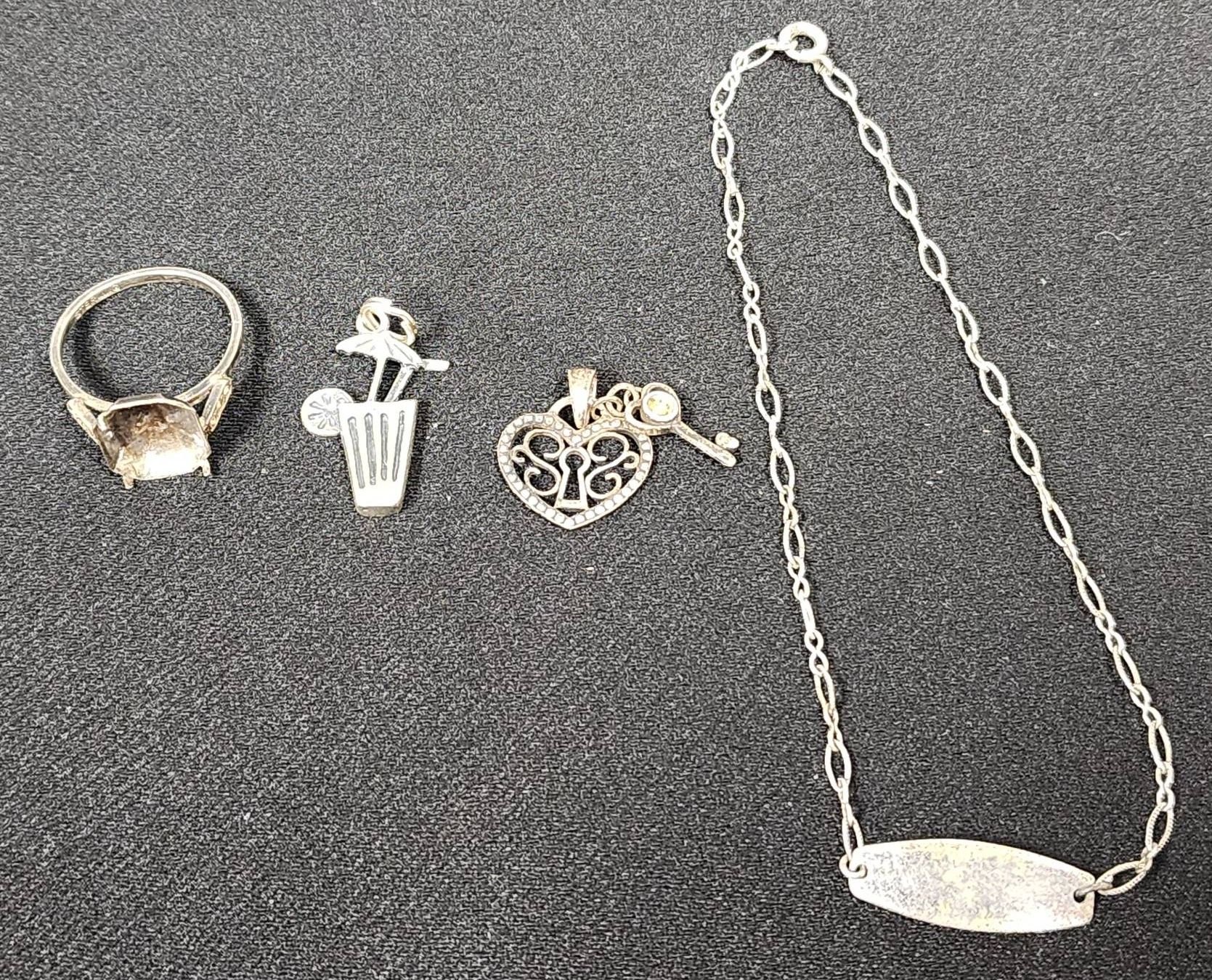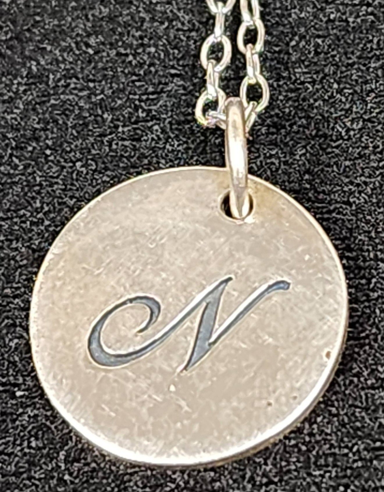 305 Chain Necklace with Round Pendant Featuring Engraved Letter ‘N’ Marked .925, 7"
