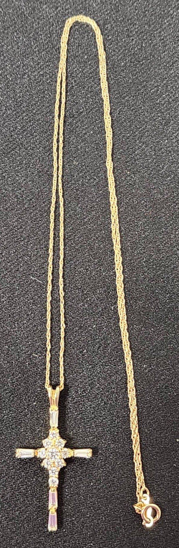 307 14KT Gold Necklace With Cross Pendant with Clear Accent Stones, 10"