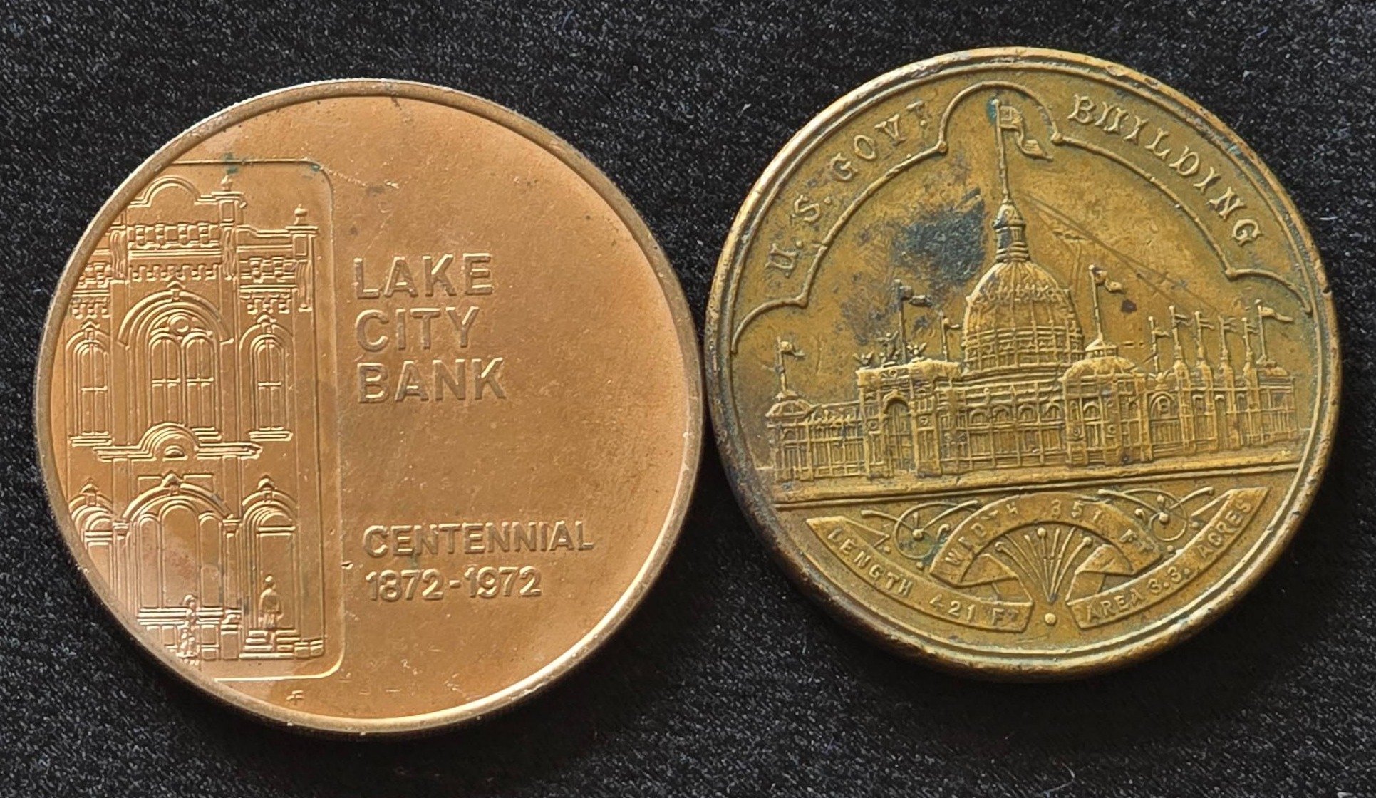 31 2 Commemorative Tokens: Lake City Bank Centennial & 1893 Columbian Exposition