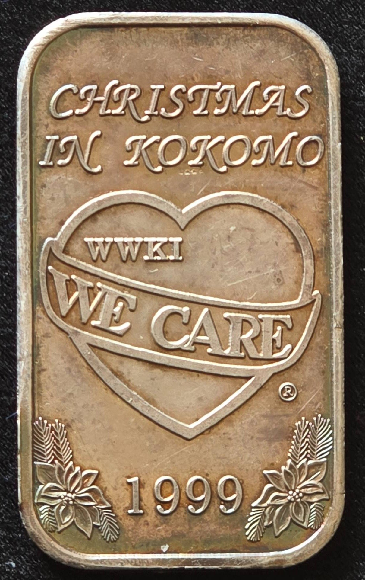 32 1999 Christmas in Kokomo WWKI We Care 1 Troy Oz .999 Fine Silver Bar