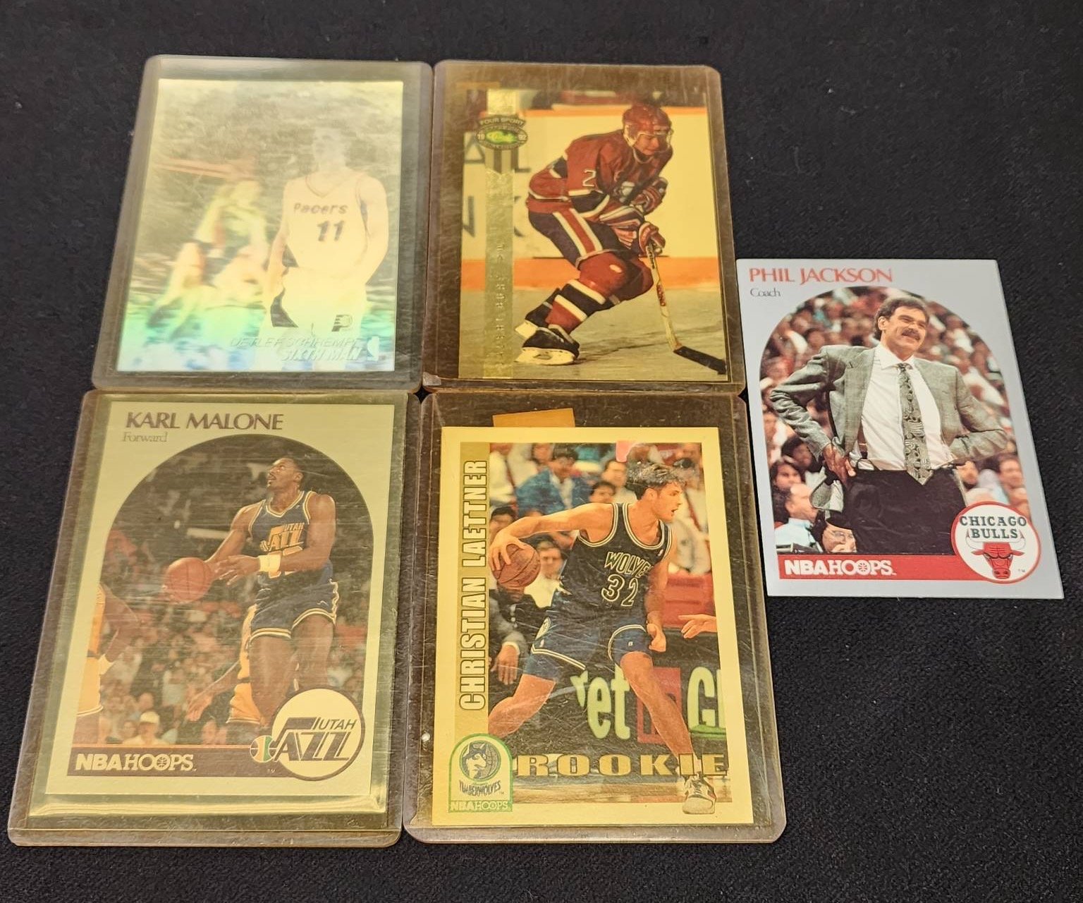 410 5 Sports Trading Cards Featuring Basketball and Hockey Players Inc. Karl Malone, Christian Laettner and Phil Jackson