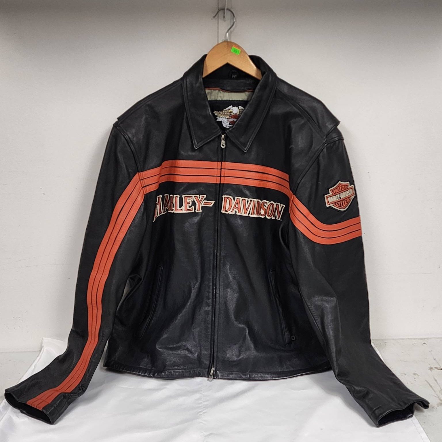 500 Harley-Davidson Black Leather Jacket with Orange Details, Size 2XT