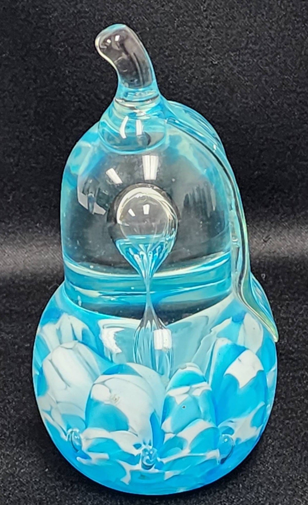 508 St. Clair Blue Art Glass Pear Paperweight with Swirled White Accents, 6"