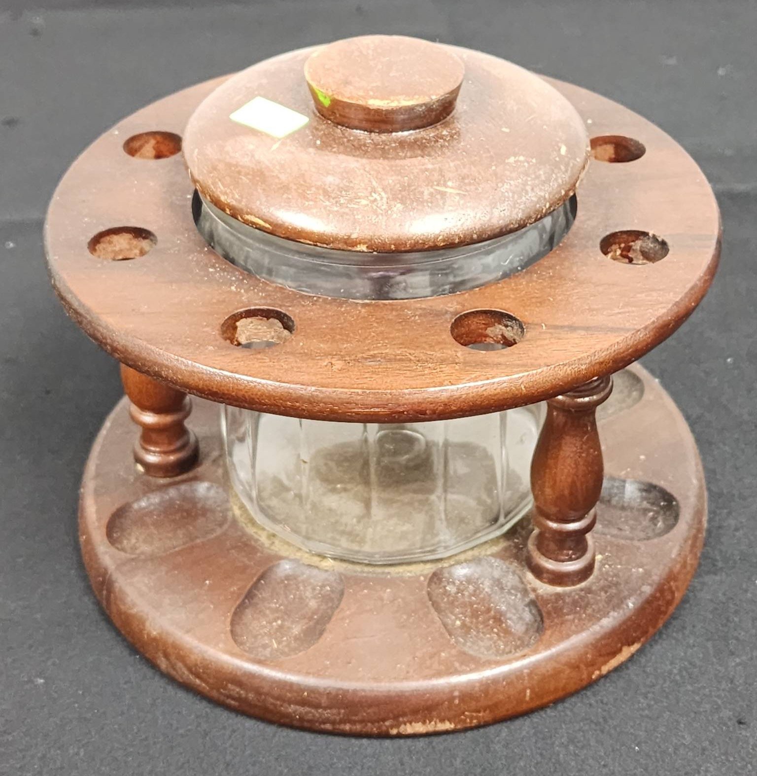 514 Pipe Holder with Glass Tobacco Jar, 7"