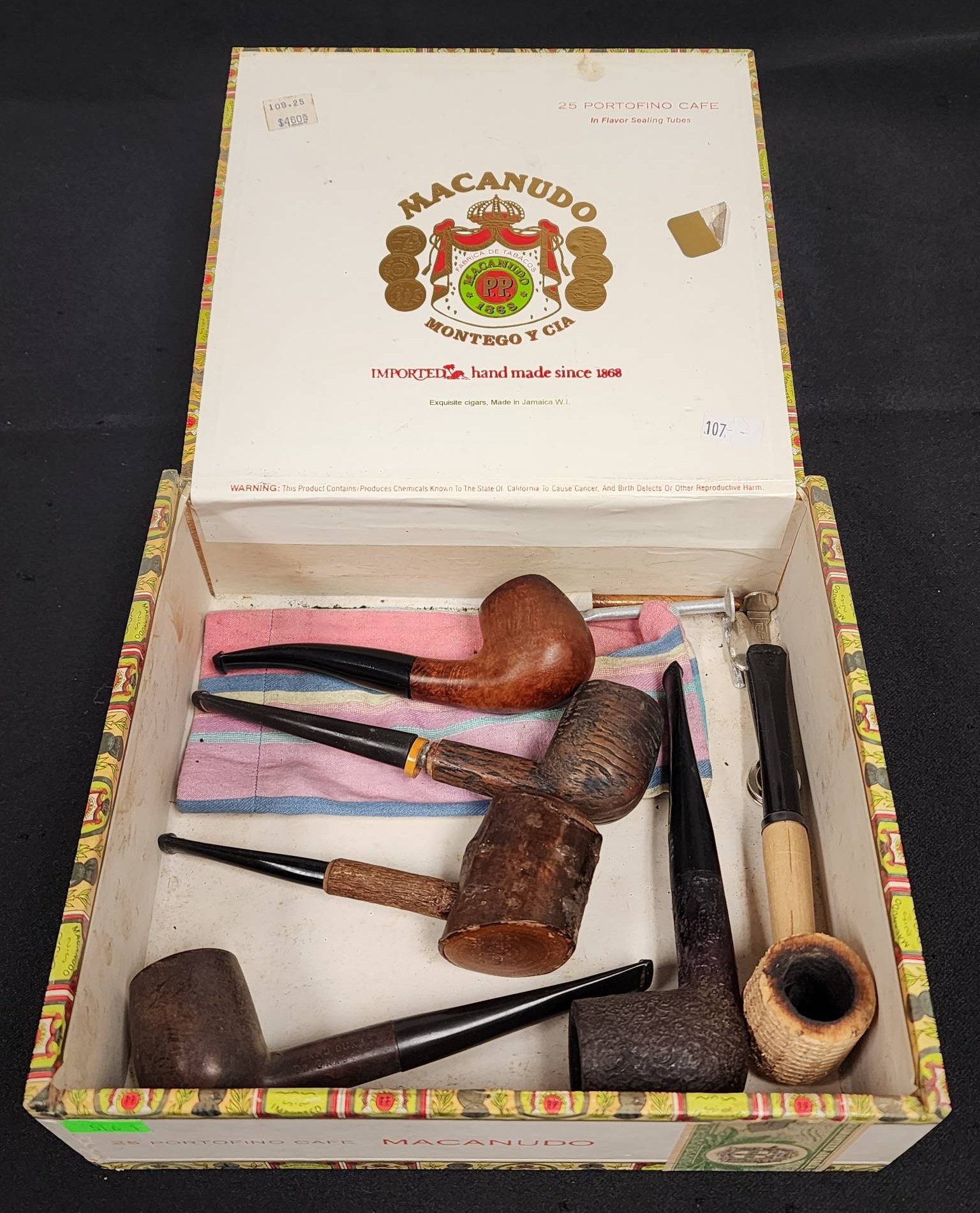 516 6 Tobacco Pipes in Macanudo Cigar Box, 9x6x2"