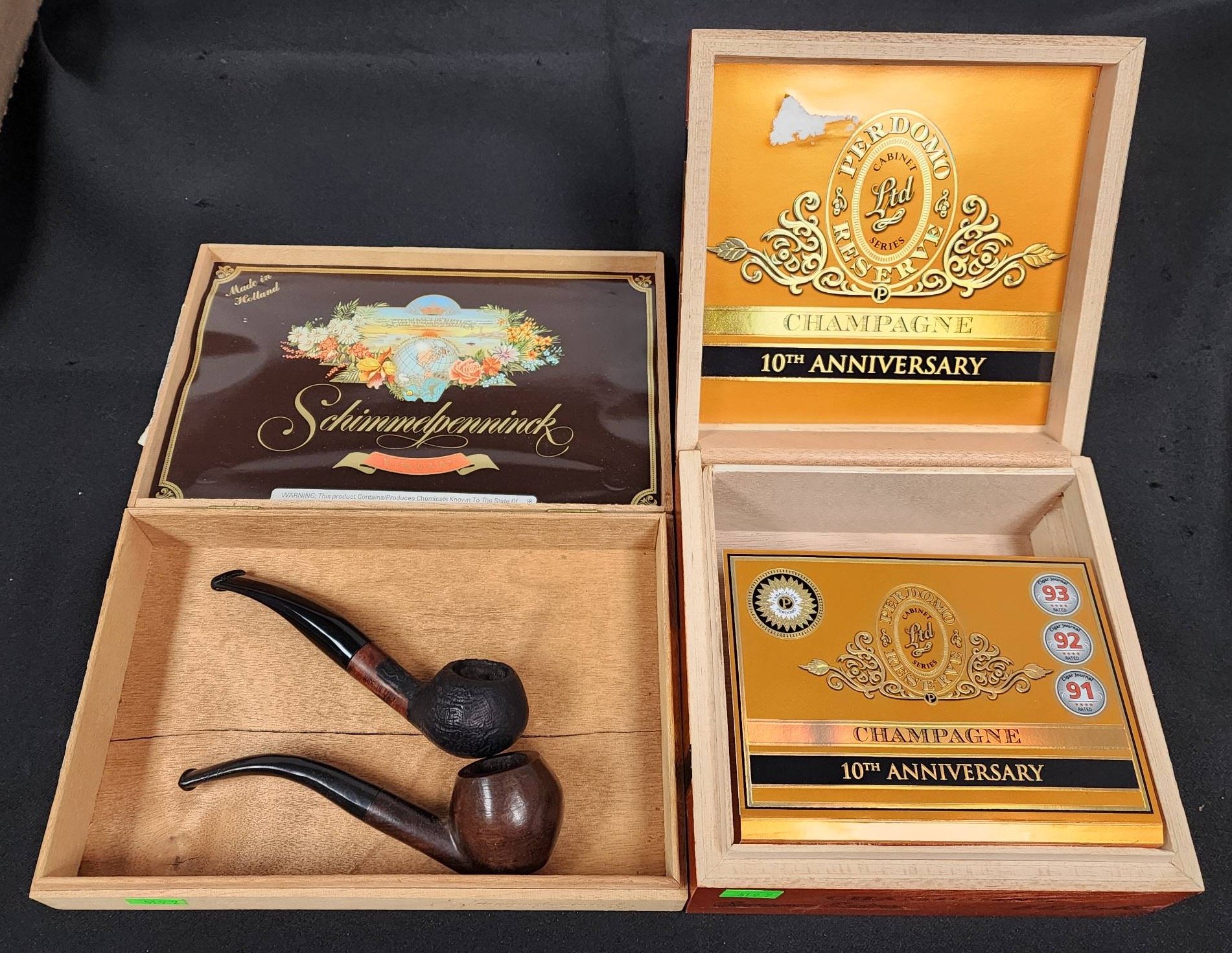 519 2 Smoking Pipes and 2 Cigar Boxes inc. Schimmelpenninck & Champagne