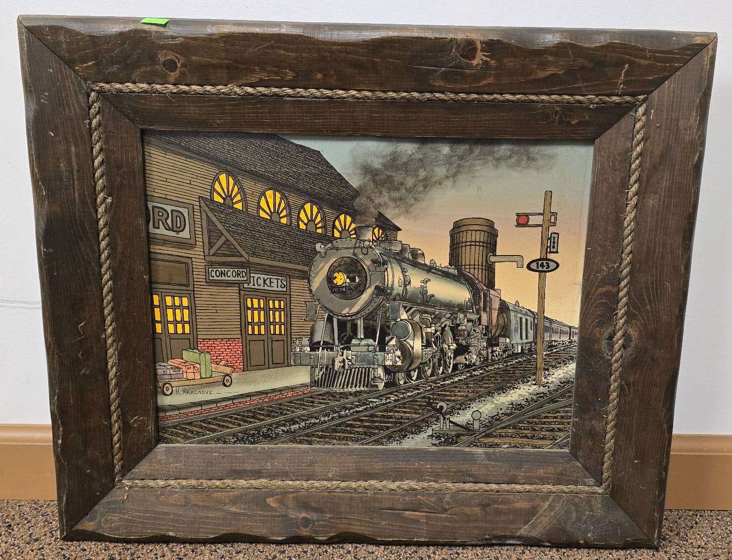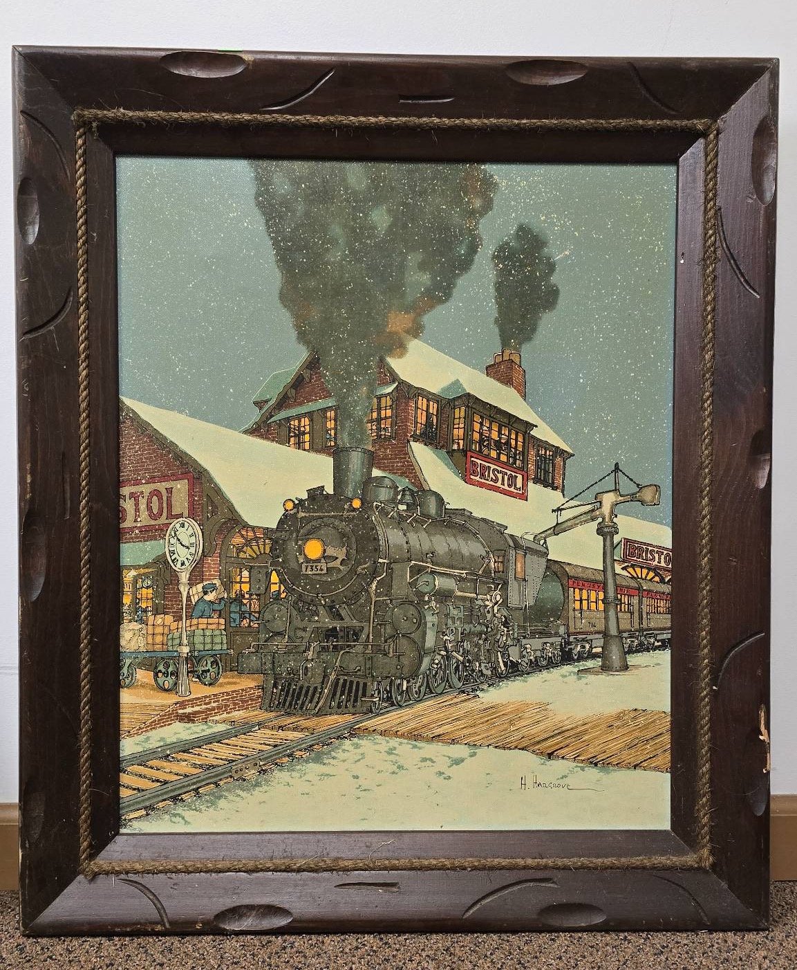 605 H. Hargrove Train Station Scene Framed Painting 22.5?x18?