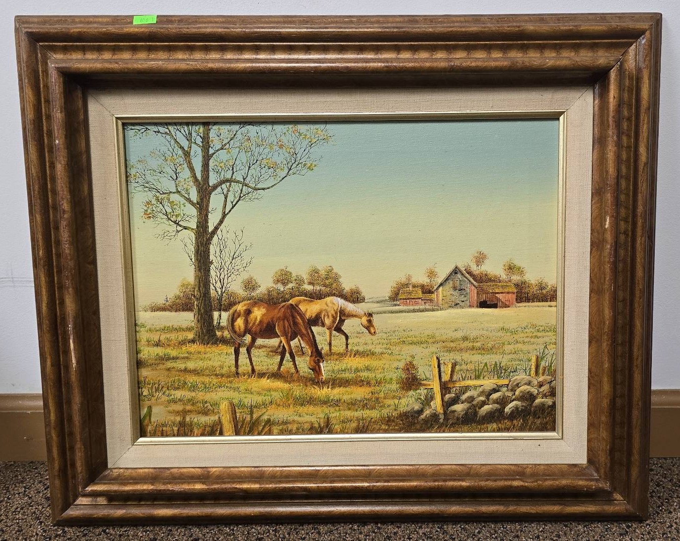 606 Framed Oil Painting on Canvas Depicting Horses and Rural Scene, 23?x19?