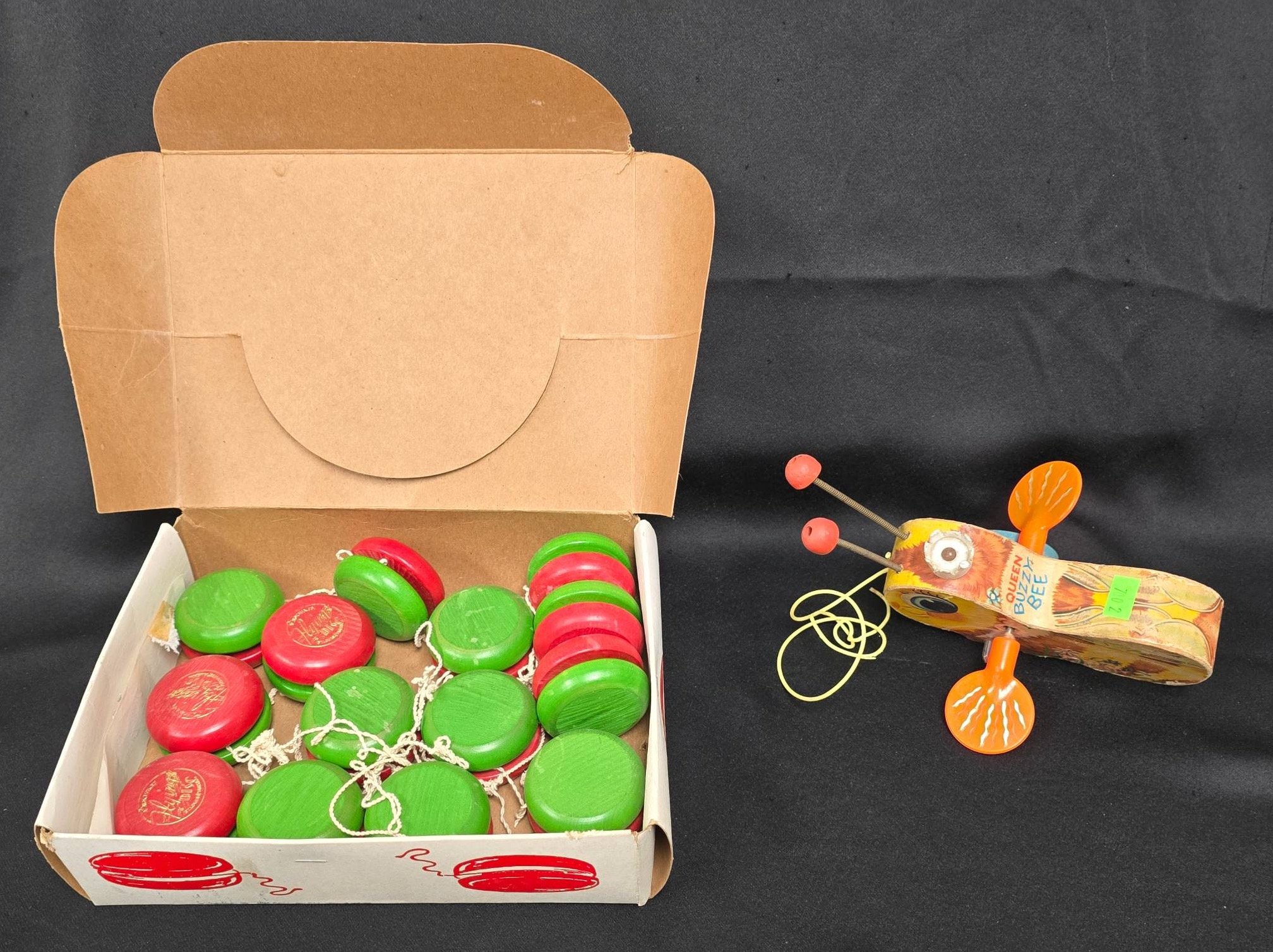 700 14 Alox Flying Disc Yo-Yos and Fisher-Price Queen Buzzy Bee Pull Toy - Missing Wheel