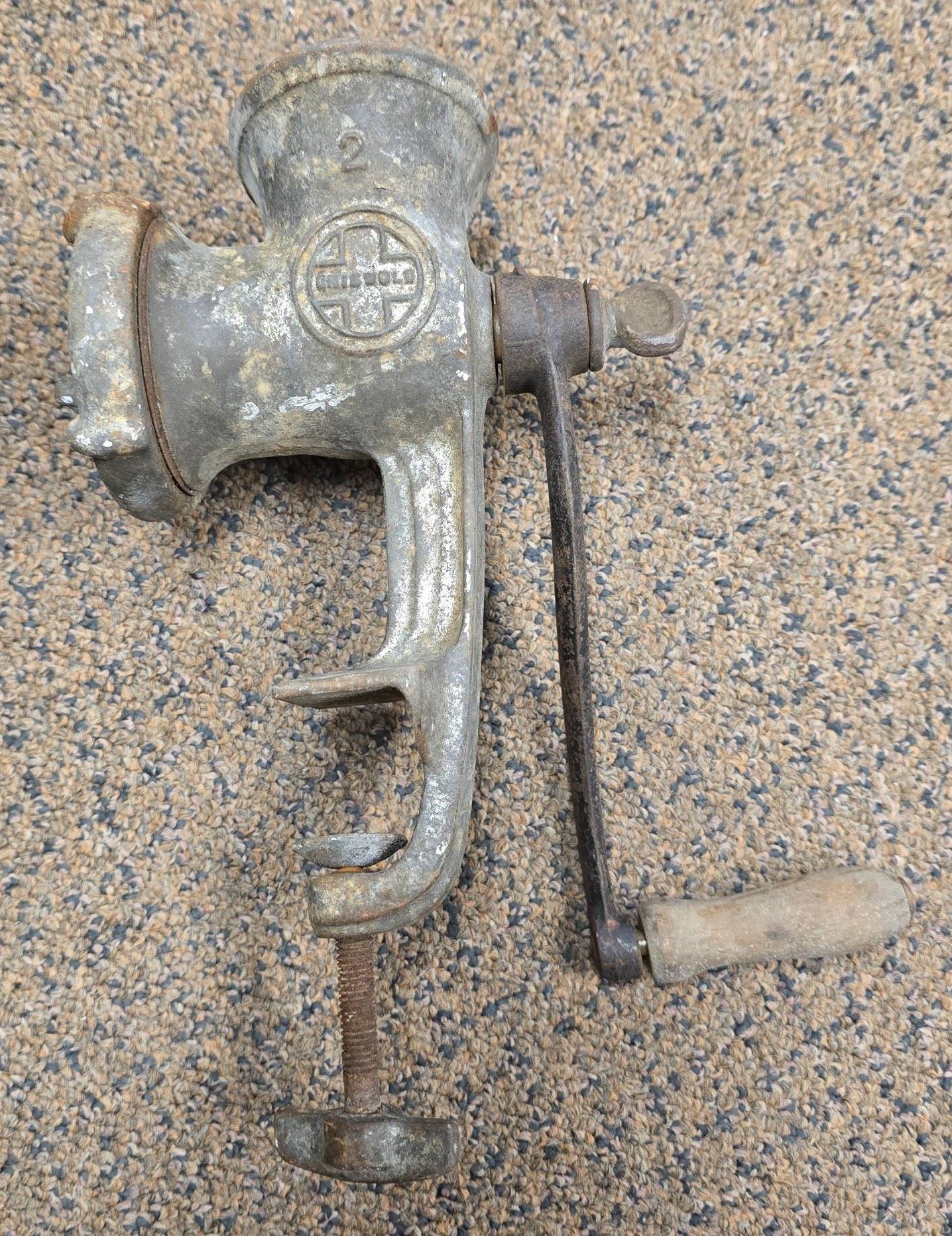 717 Griswold No. 2 Cast Iron Meat Grinder with Hand Crank